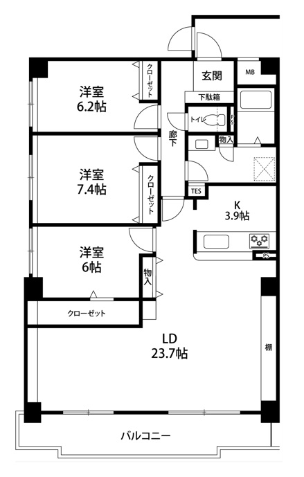 | 間取内容 | 1階LD23.7畳1室 1階K3.9畳1室 1階洋室7.4畳1室 1階洋室6.2畳1室 1階洋室6畳1室 |